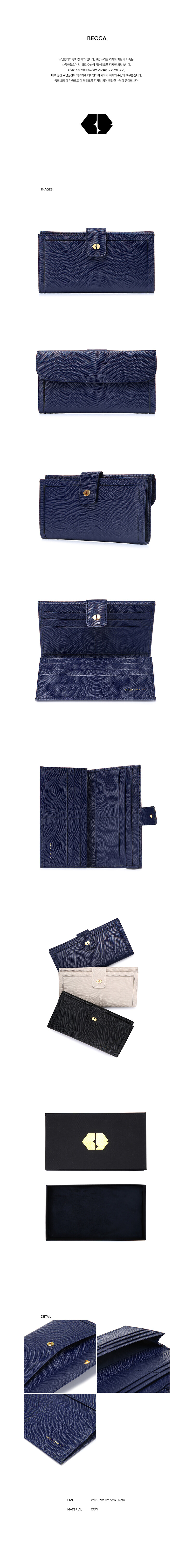 스냅형태의 장지갑 베카 입니다. 고급스러운 리저드 패턴의 가죽을 사용하였으며 앞, 뒤로 수납이 가능하도록 디자인되었습니다. 바이커스탈렛의 BS금 속 로고장식이 포인트를 주며, 내부 공간 수납공간이 넉넉하게 설계되어 카드와 지폐의 수납이 여유롭습니다. 동전 포켓이 가죽으로 다 덮히도록 디자인 되어 안전한 수납에 용이합니다.