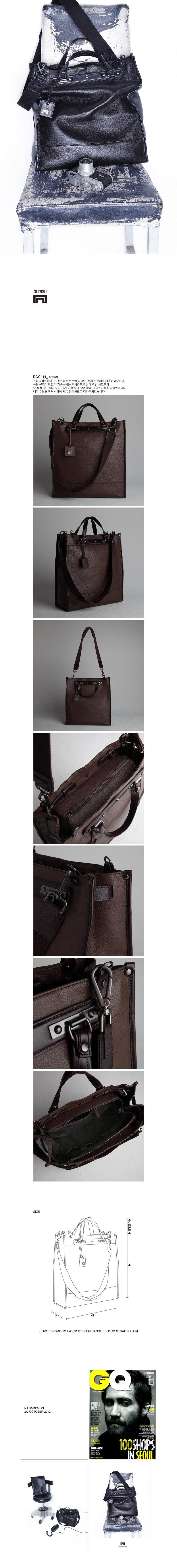 유니섹스로 출시된 라인 BUREAU의 고급스러운 소가죽 소재와 웨빙 숄더 스트랩으로 구성된 토트 겸 숄더백입니다. 매니쉬한 셰잎과 유니크한 메탈 하드웨어 디테일이 색다른 디자인입니다.