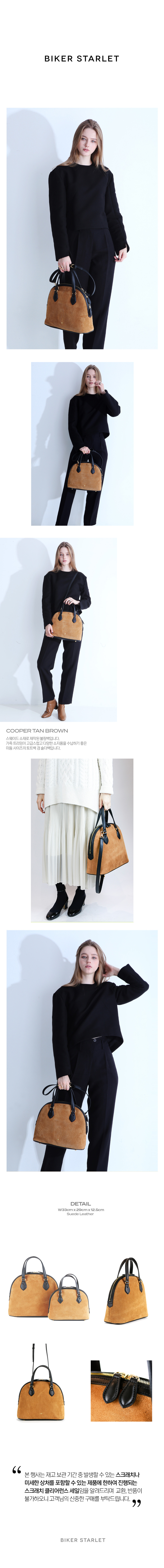 쿠퍼는 스웨이드와 플레인 소가죽의 콤비가 귀엽고 실용적인 볼링백입니다. 양쪽으로 열 수 있는 지퍼탭이 오픈, 수납에 편리하고 토트, 숄더, 크로스를 할 수 있어 연출하기도 쉽고 데일리 데님이나 자켓, 코트 위로 가볍고 캐주얼하게 스타일링하기 좋은 아이템입니다.